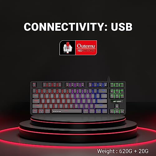 Ant Esports Gaming Keyboard MK1000 TKL Mechanical Multicolor LED Backlit Wired -Black with Outemu Blue Switch
