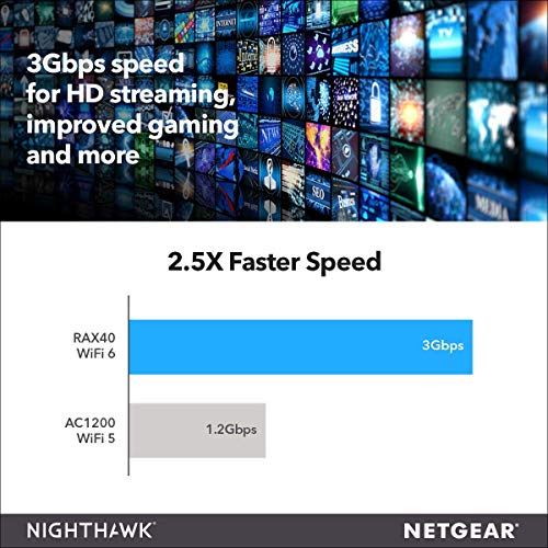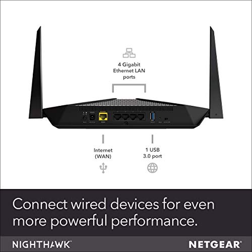 Netgear Nighthawk AX4 4-Stream WiFi 6 Router (RAX40) - AX3000 Wireless Speed (up to 3Gbps) | Coverage for Small-to-Medium Homes | 4 x 1G Ethernet and 1 x 3.0 USB Ports, Dual_Band, Black