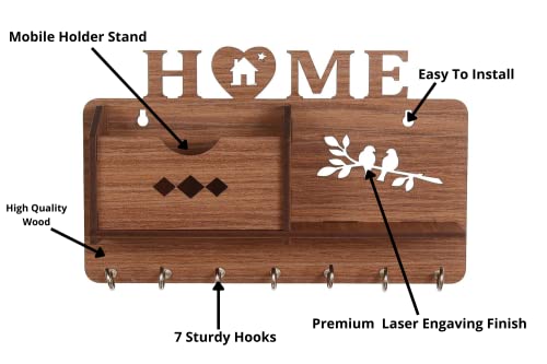 Webelkart Wooden Matte Finish Designer Home Side Wall Shelf, Key Holder with 7 Keys Hooks (Brown)- Home Decor Items, Diwali Decorations Items