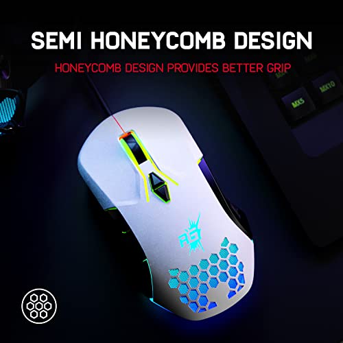 Redgear A-15 Wired Gaming Mouse with RGB, Semi-Honeycomb Design and Upto 6400 dpi for Windows PC Gamers(White)