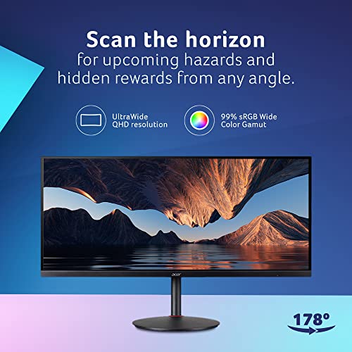 Acer Nitro Ultrawide Xv340Ckp 34 Inch (86.36 Cm) Led IPS Qhd 3440 X 1440 Pixels Gaming Monitor, 1 Ms Vrb, 144Hz Rapid Refresh Rate, AMD Freesync, Hdr10, 2XDp Ports, 2 X Hdmi, 2 X USB 3.0 Ports, Black