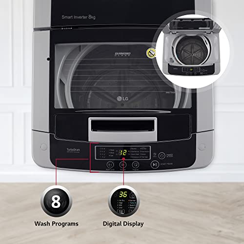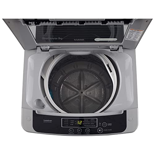 LG 8 Kg 5 Star Smart Inverter Technology TurboDrum Fully Automatic Top Loading Washing Machine (T80SKSF1Z, Smart Diagnosis, Digital Display, Middle Free Silver)