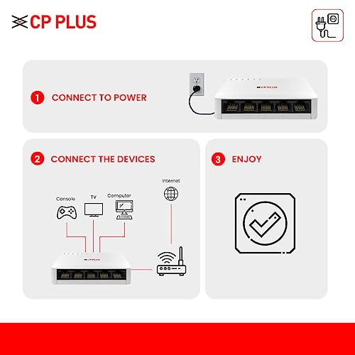 CP Plus 5-Port 10/100/1000Mbps Gigabit Switch | Reliable Switching Performance | RJ45 Connector | Switch Capacity: 10 Gbps | Low Power Consumption| Plug & Play - CP-ANW-GS105-M