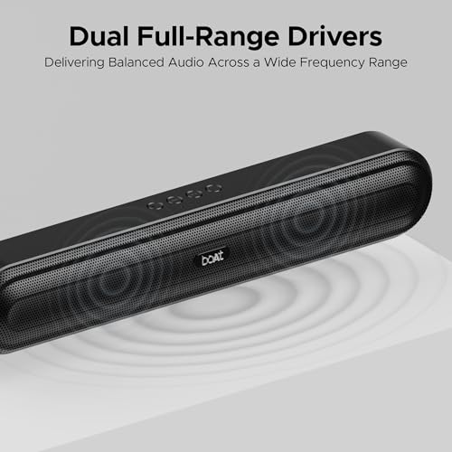Impressive Sound: Enjoy crisp and clear audio with 10W RMS of boAt Signature Sound delivered by dual full-range drivers in a 2.0 channel portable soundbar.