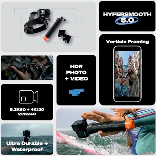 GoPro Hero12 Bundle Pack - Includes Hero12 Action Camera, 2-Batteries, Floating Hand Grip, Head Strap, Curved Adhesive Mount, Mounting Buckle, Carrying Case (1-Yr International + 1-Yr India Warranty)