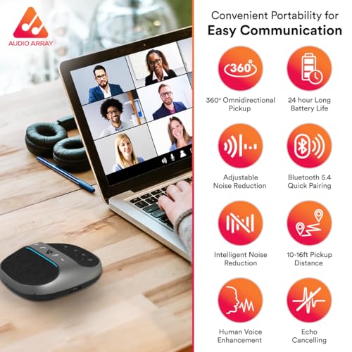 Audio Array AM-W45 Wireless Conference Microphone with Speaker | Bluetooth, USB & 4 Mics | 360° Pickup Upto 4M | Noise Reduction & Enhanced Voice | Portable Speakerphone for Video Calls/Zoom Meeting