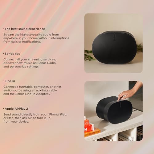 - Multi-Speaker Pairing: Pair with other Sonos speakers for a synchronized multi-room audio experience or use as surround sound with compatible Sonos soundbars.