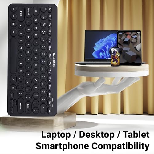 ZEBRONICS K4000MW Wireless Keyboard with 2 Bluetooth & 2.4 GHz Wireless Connection,78 Keys, Integrated Multimedia Keys,Minimalist Design,Compatible with Laptop/Desktop/Tablet/Smartphone